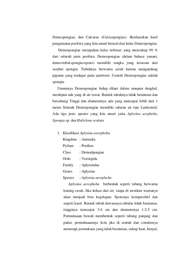 4 Kelas Porifera dan Contohnya LAPORAN PRAKTIKUM BIOLOGI . Sumber Gambar : imudiansyah2.blogspot.com